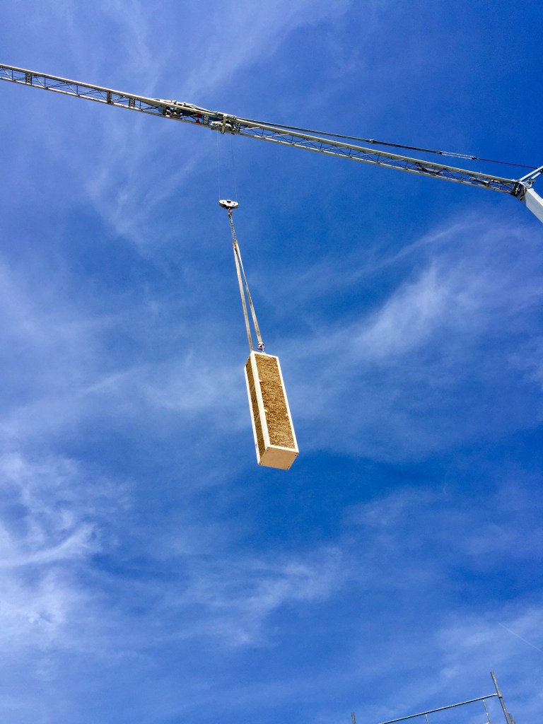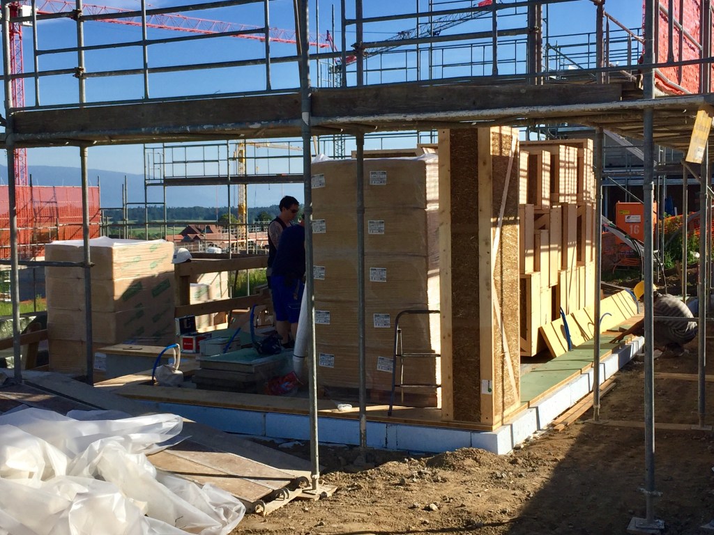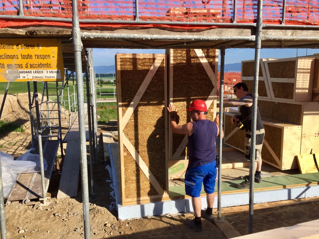 Le travail avance très vite. C’est un vrai légo géant ! Il suffit de placer les modules et de les visser entre eux !