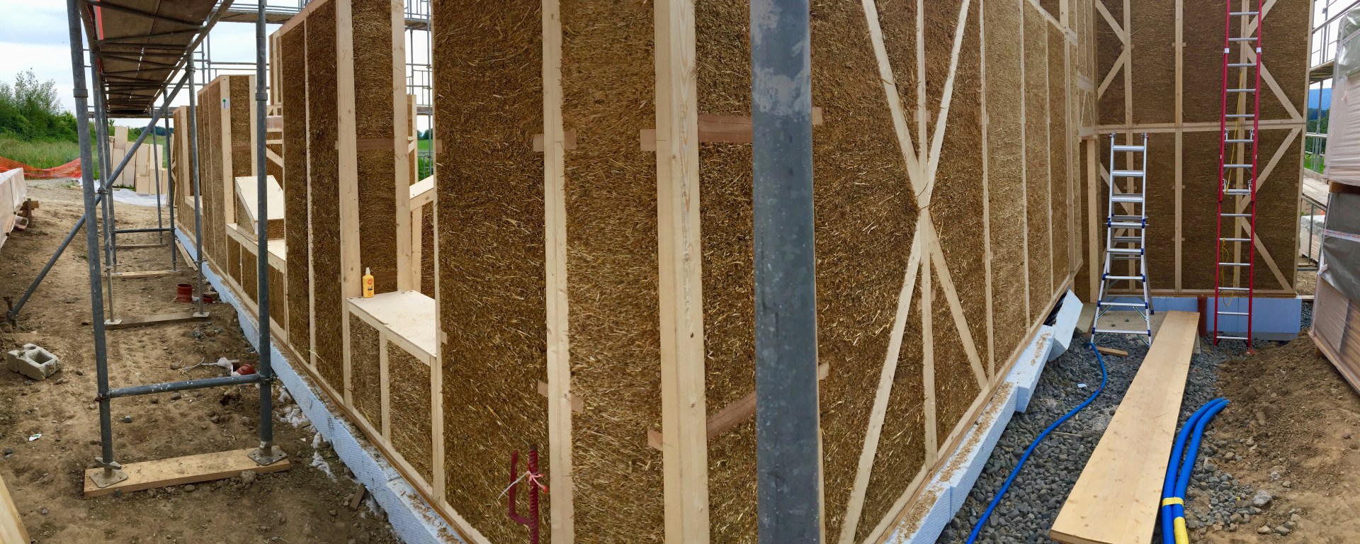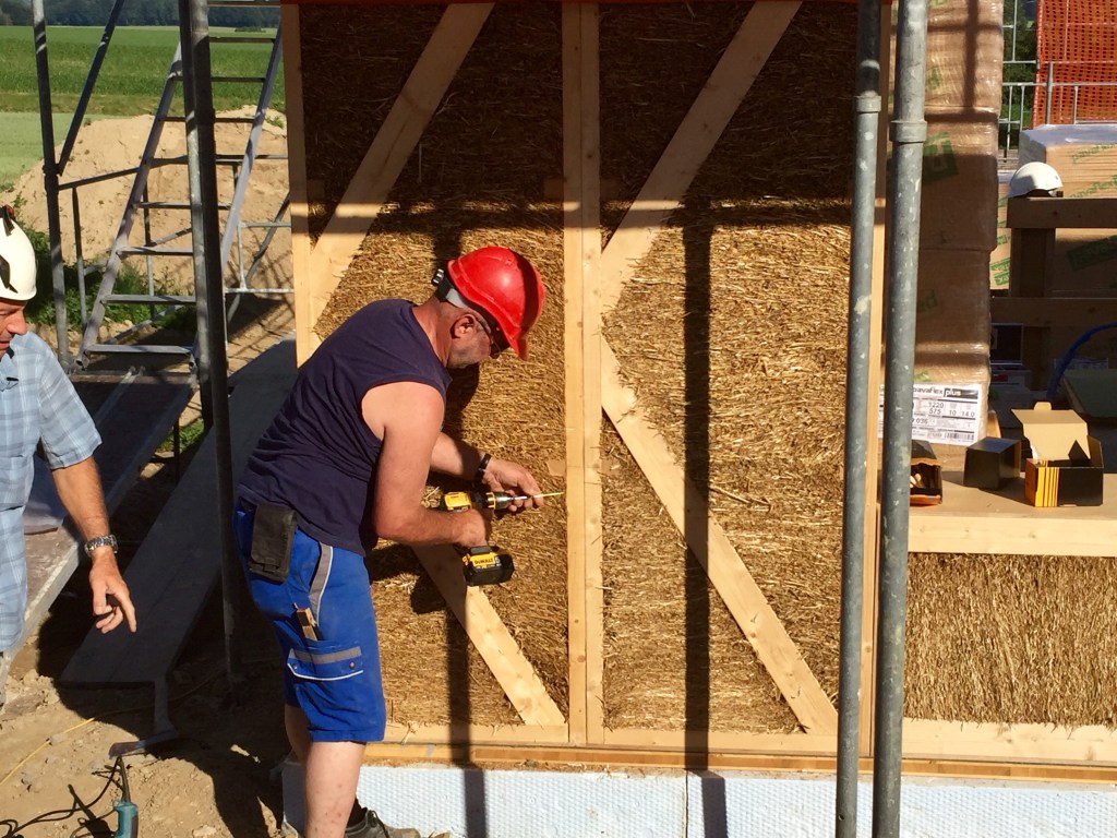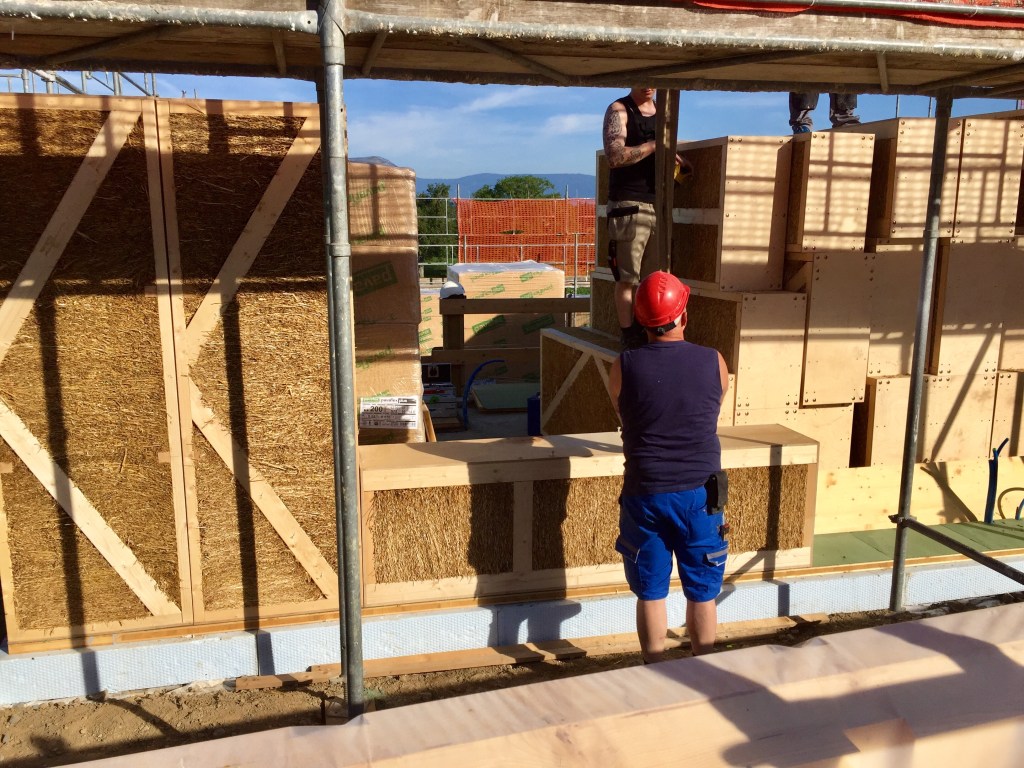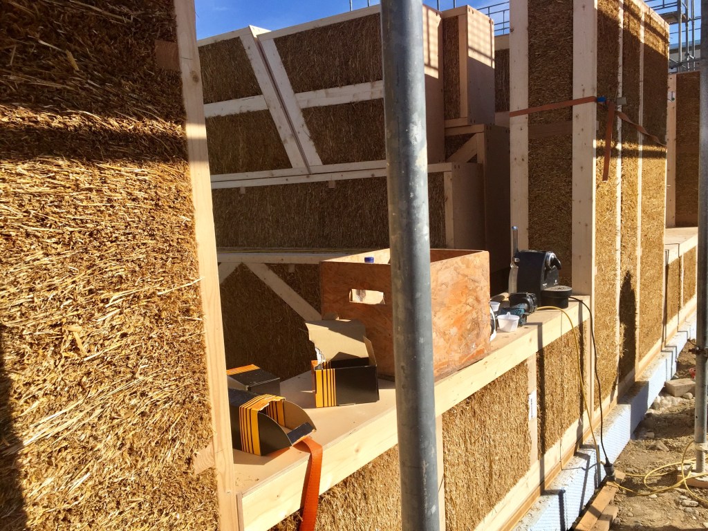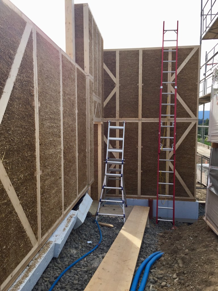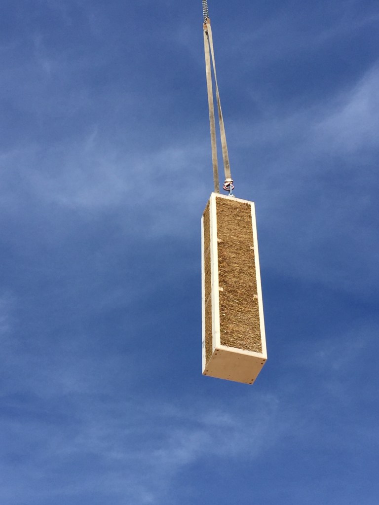 Ça y est, enfin, le jour tant attendu est finalement arrivé. Cela fait pratiquement 2 ans que nous rêvons de la paille. Nous l’avons imaginée, nous l’avons étudiée, et ça y est, elle est là, en train d’être installée à sa place.