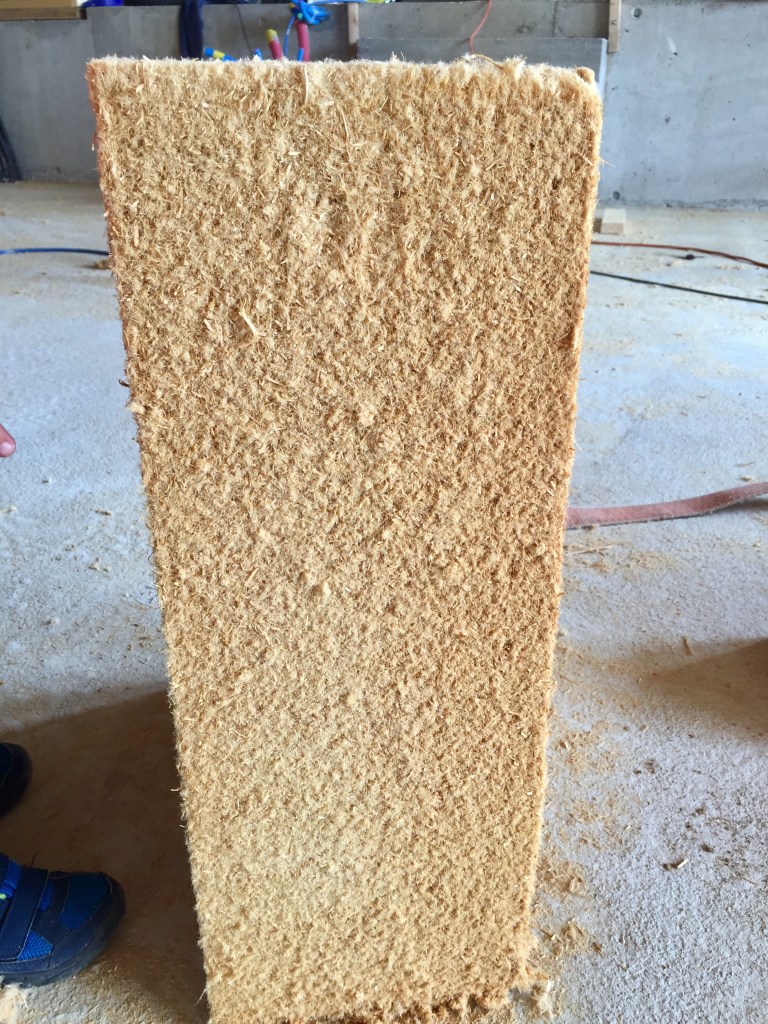 Les panneaux de fibre de bois ont une épaisseur de 6cm. C’est un très bon isolant, solide, léger, et facile à installer. Les panneaux s’emboîtent les uns dans les autres.