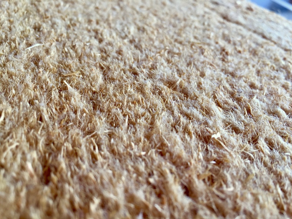 En-dessous de la fibre de bois, entre les chevrons, est installée de la laine de bois. Nous l’avions présenté rapidement dans le carnet de bord #19. C’est un matériau entièrement recycable, biodégradable, léger, flexible, conçu avec du bois de forêts durablement gérées, sans colle ni aucun autre produit toxique ou artificiel. Certains constructeurs ajoutent du polyesther pour obtenir cet aspect « matelassé », mais dans notre cas, nous avons pris soin de trouver un constructeur qui utilise du chanvre ou du lin, qui sont aussi des matériaux naturels et entièrement recyclables. La laine de bois est également un fixateur de carbone. Enfin, en plus d’être un excellent isolant thermique (λ𝐷 = 0.036), c’est un très bon isolant phonique. C’est un produit qui est de plus en plus présent.