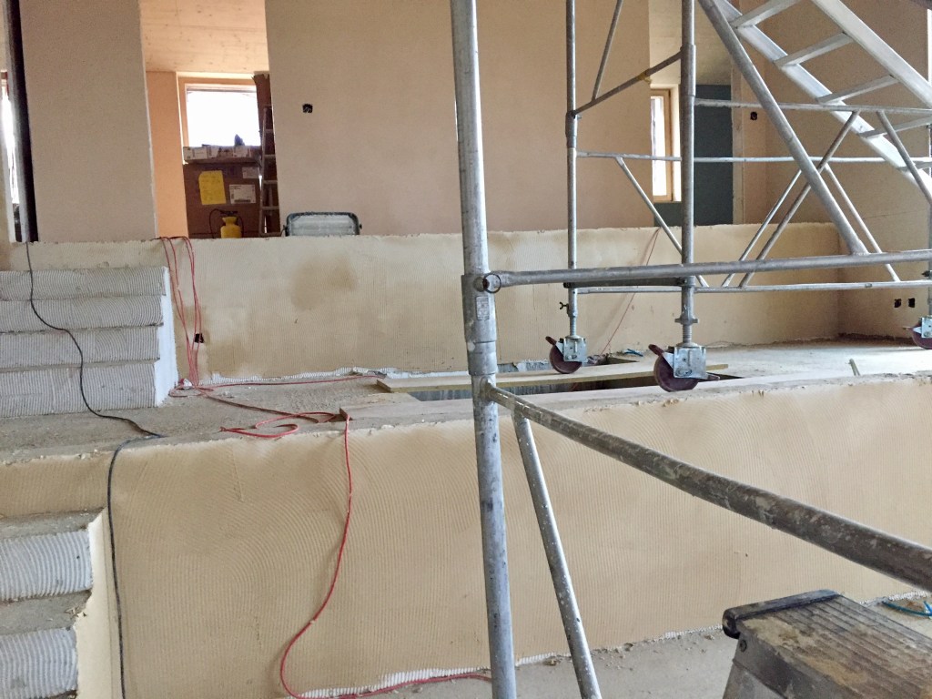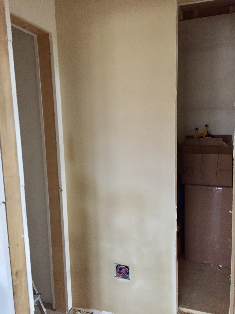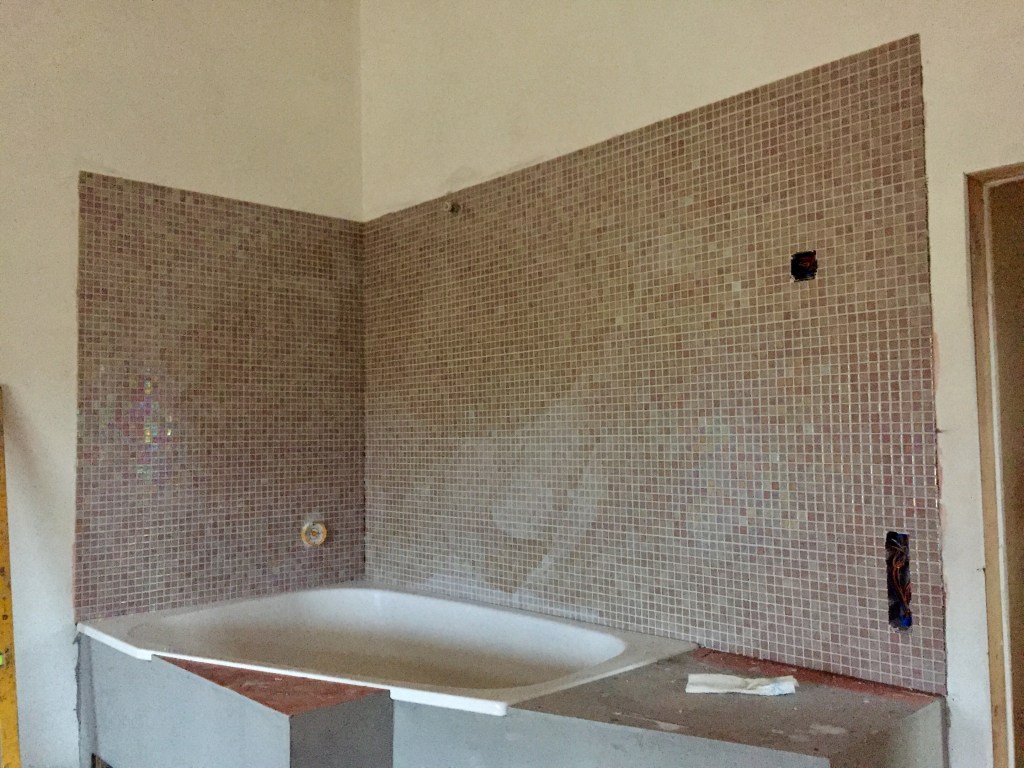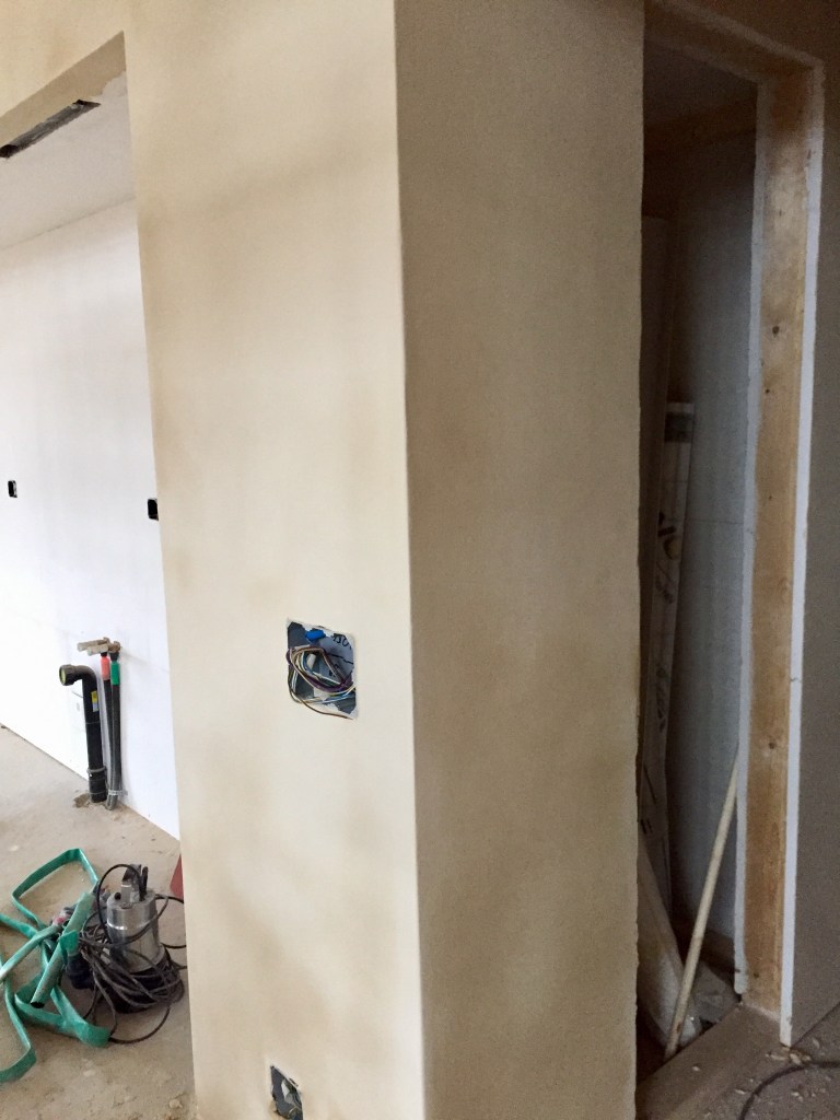 La dernière couche de terre est terminée dans pratiquement toutes les pièces. La faïence a commencé dans la chambre parentale. Rien de compliqué à expliquer, donc place aux photos en vrac !