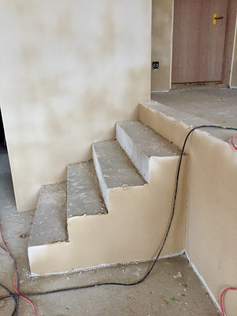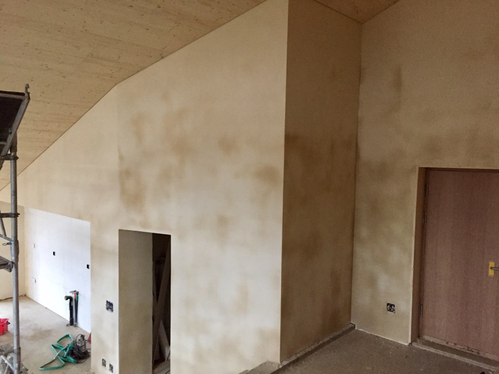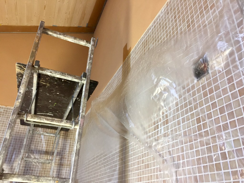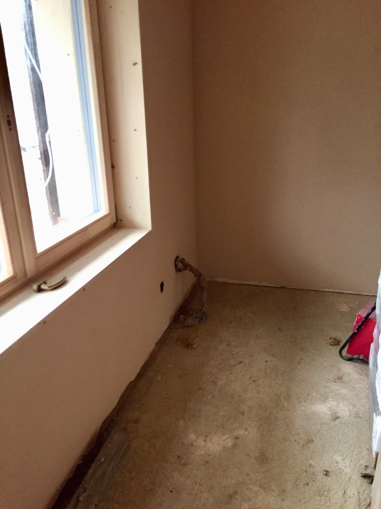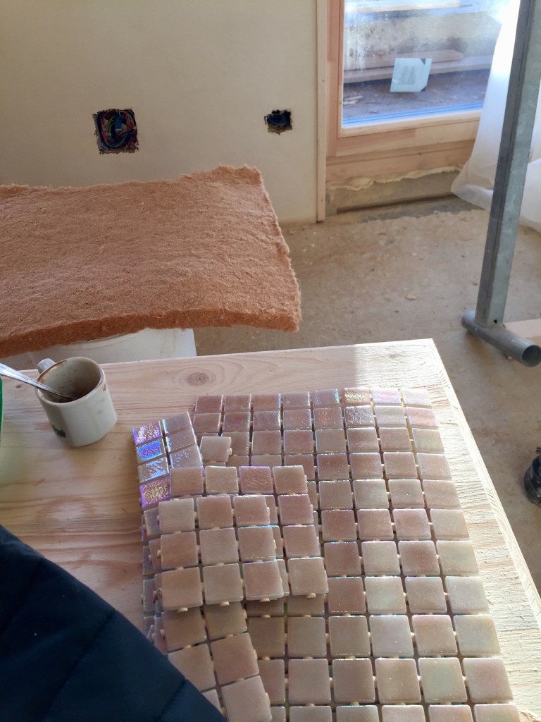 La dernière couche de terre est terminée dans pratiquement toutes les pièces. La faïence a commencé dans la chambre parentale. Rien de compliqué à expliquer, donc place aux photos en vrac !