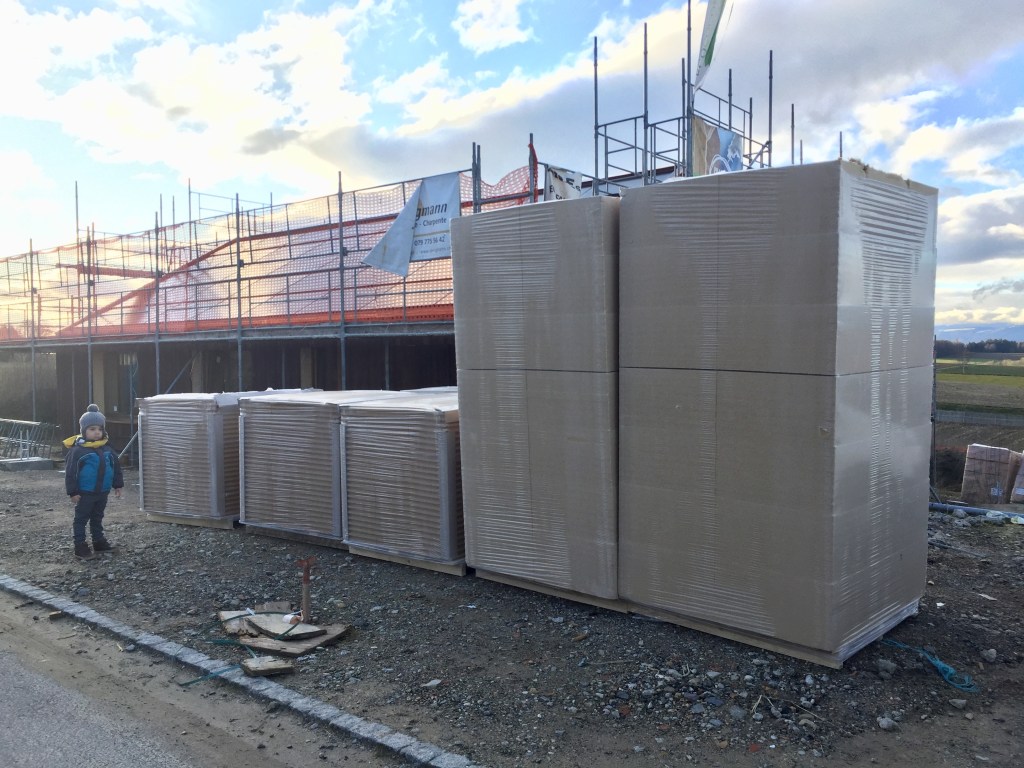 La semaine prochaine, c’est au tour de la chape sèche en fibre de bois. Elle attend patiemment.