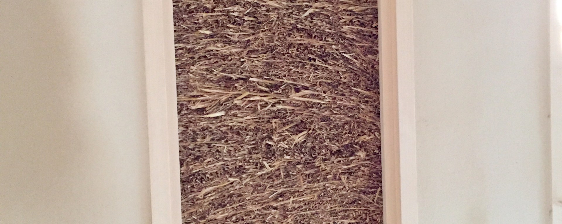 Pour commencer, la fenêtre de vérité est terminée. Vous savez, ce cadre qui offre une vue sur la paille, pour prouver que la maison est bien construite en paille. C’est magnifique !