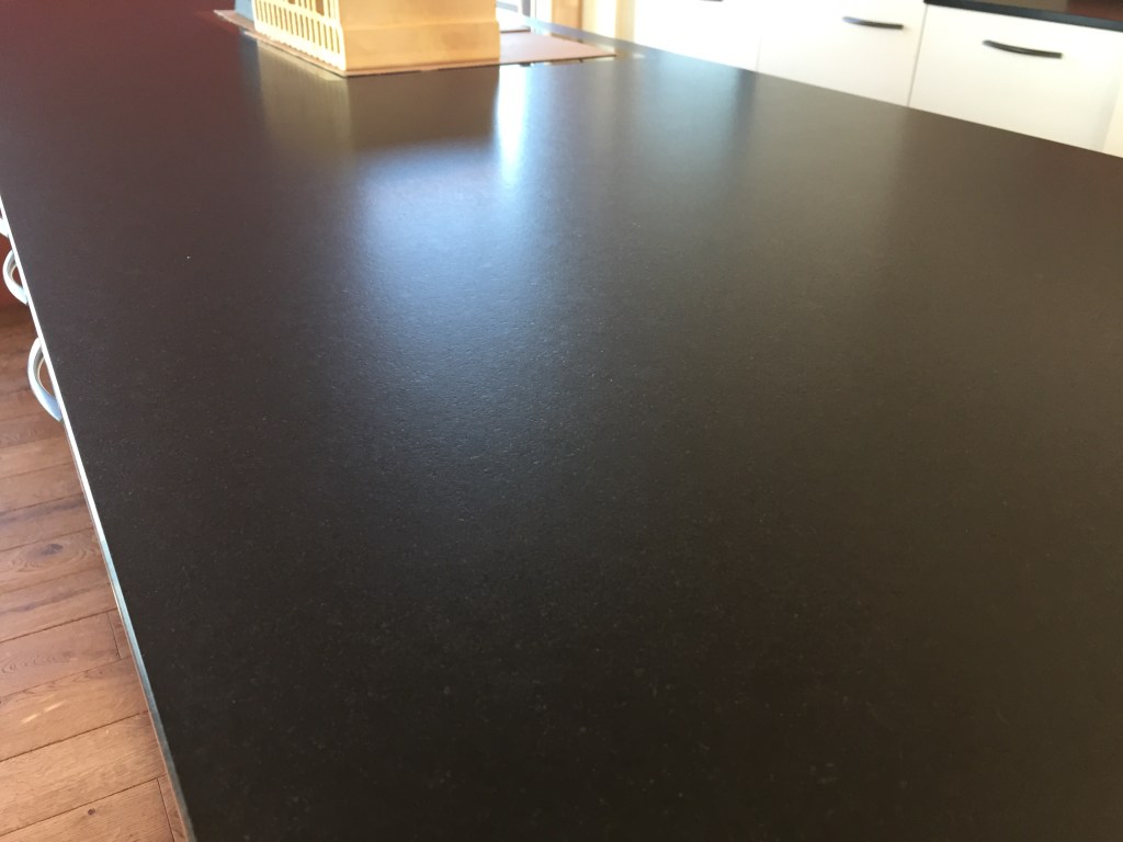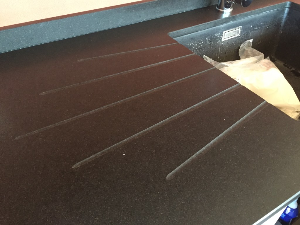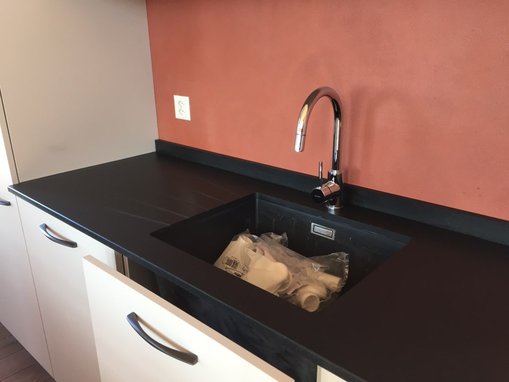La cuisine n’était pas encore fonctionnelle quand nous sommes rentrés. Campingaz en dépanage. La semaine dernière nous avons reçu notre plan de travail en granit, ce qui a permis deux choses :